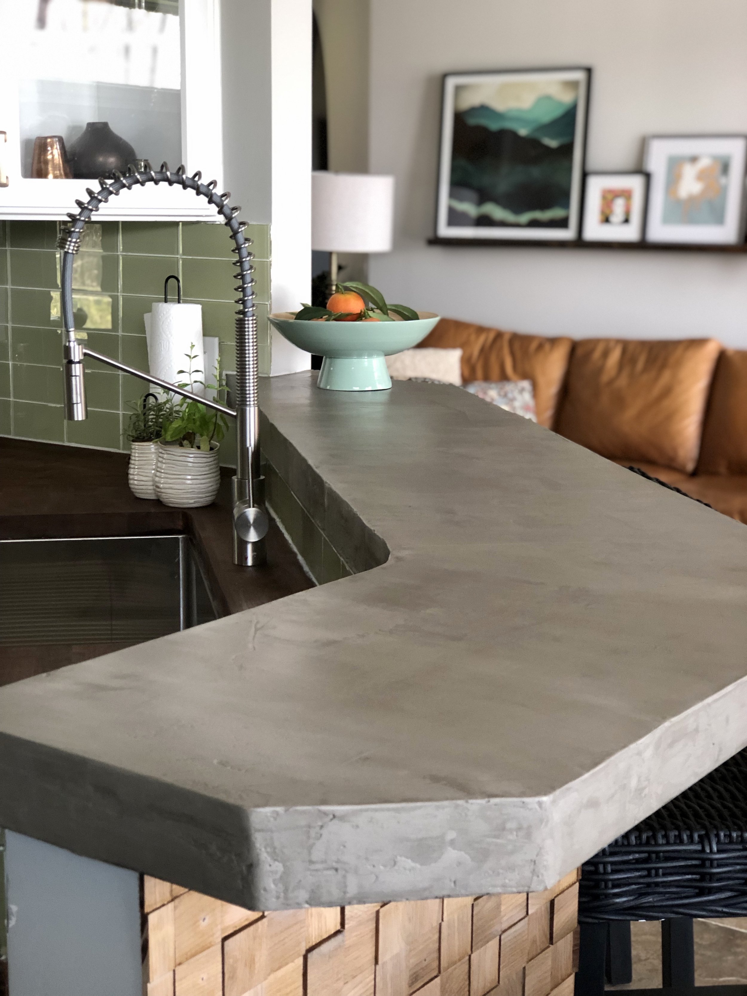 How To Finish Concrete Countertop : Diy Concrete Countertops Part 2 Pouring And Finishing Greywoodmama : Concrete can be cast into any shape and pigmented, stained, or textured with all kinds of shades and finishes;. How are concrete countertops made? Many people are stuck with an outdated kitchen because it's just suuuuuuuccchhhh an expensive space to redo! If this video helped you on your. For creative concrete professionals, the concrete countertop institute provides extensive business training and resources, including starter kits of tools, equipment the cci diamond pads are the best that i've used. Unsurprisingly, concrete countertops are showing up everywhere—kitchens, bathrooms, even outdoor food prep areas.