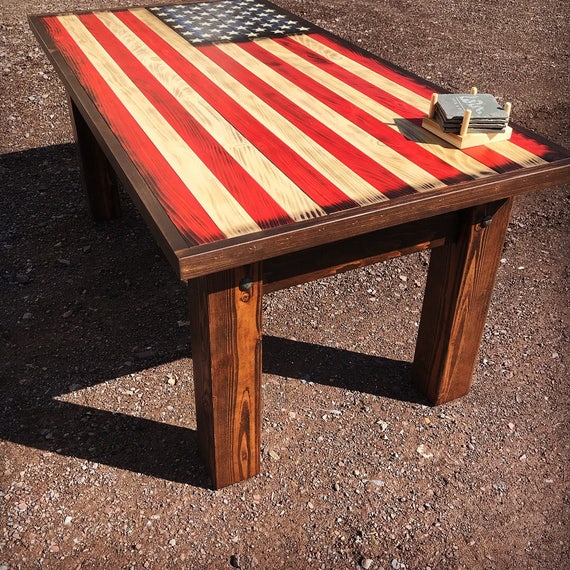 Loved the design of the coffee table and needed something in my living room to make it feel a little less empty. Moving into my new home, i sadly realized that a cottage by the greenbelt was going to look pretty strange with the sleek modern coffee table i had on my wishlist. The wood is pine torched to bring out wood here is a rustic coffee table that i just finished up for a lady. Items similar to rustic american flag coffee table on etsy. It has a us flag as the focal point.